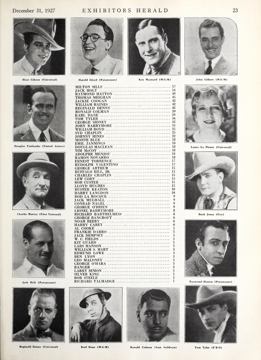 end of 1927, Exhibitor's Herald ranked Tom at #36, ahead of
