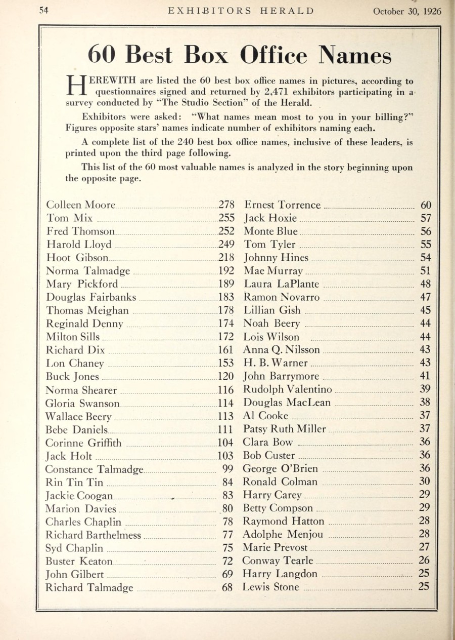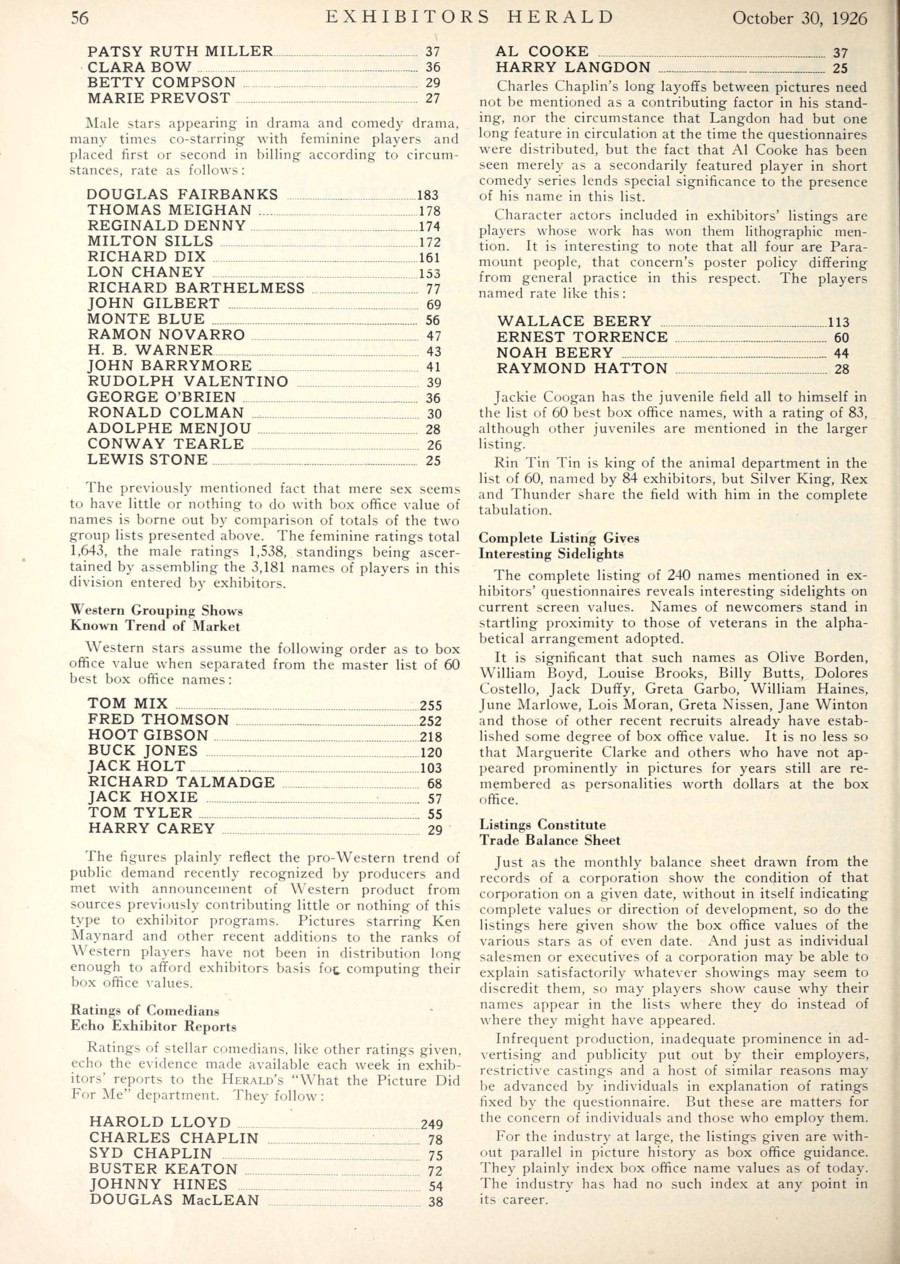 Exhibitor's Herald publication dates of October 30, 1926 and